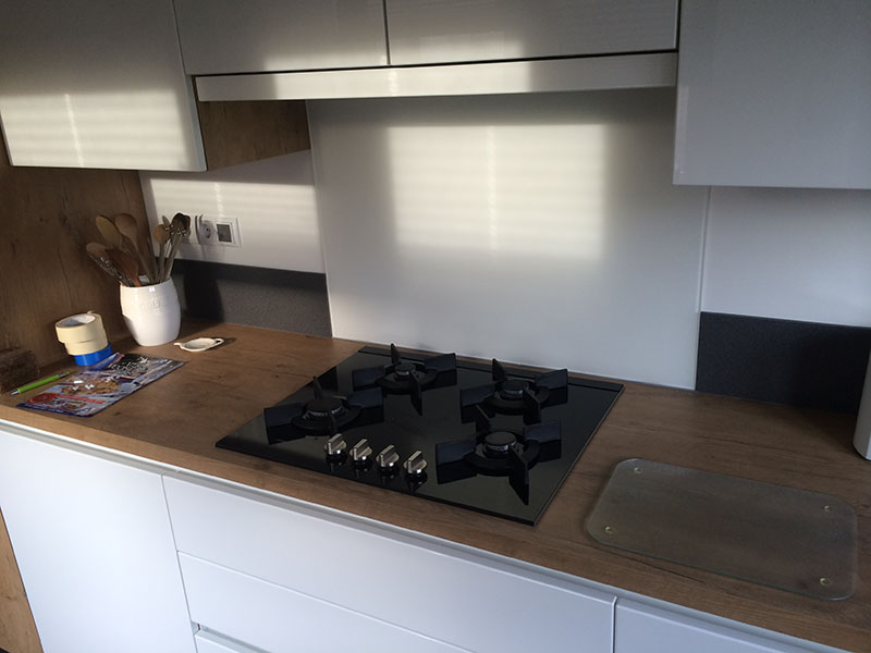 Bij een particuliere opdrachtgever uit Nijkerk hebben wij een keuken voorzien van glas. Er is hier gekozen voor 6mm EXTRA HELDER