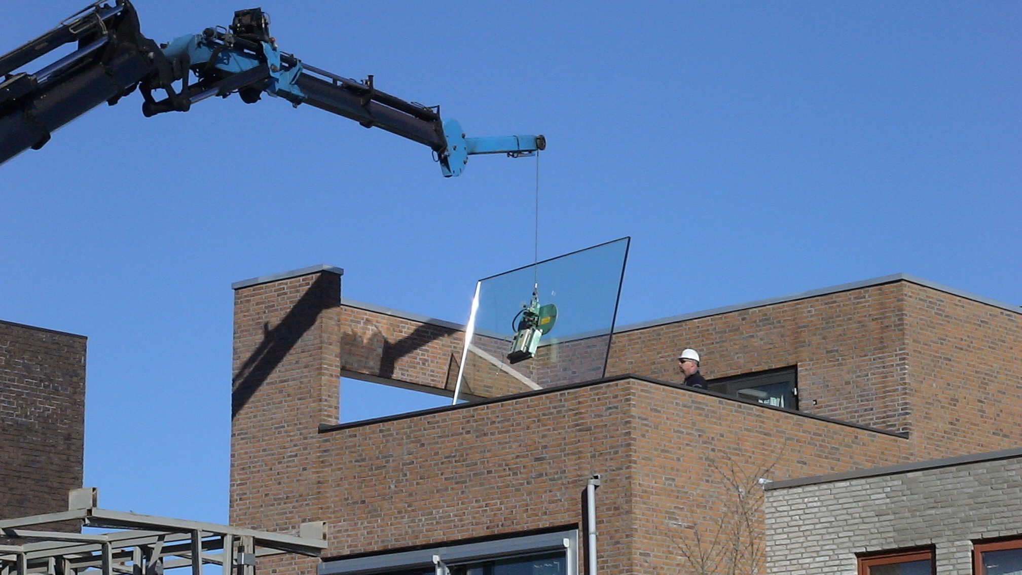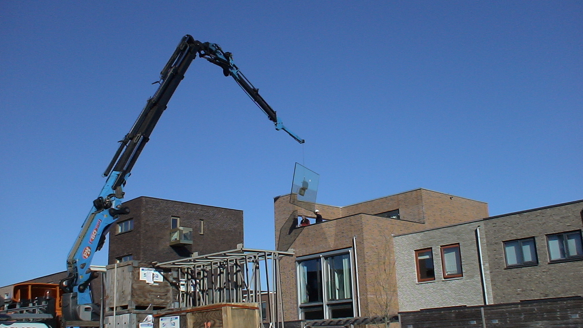 Isolerende ruiten  samengesteld met gelaagdglas kunnen veelal alleen met een kraan geplaatst worden. Proglass heeft bij deze woning in de wijk Nieuwland dan ook gekozen voor deze manier van monteren.